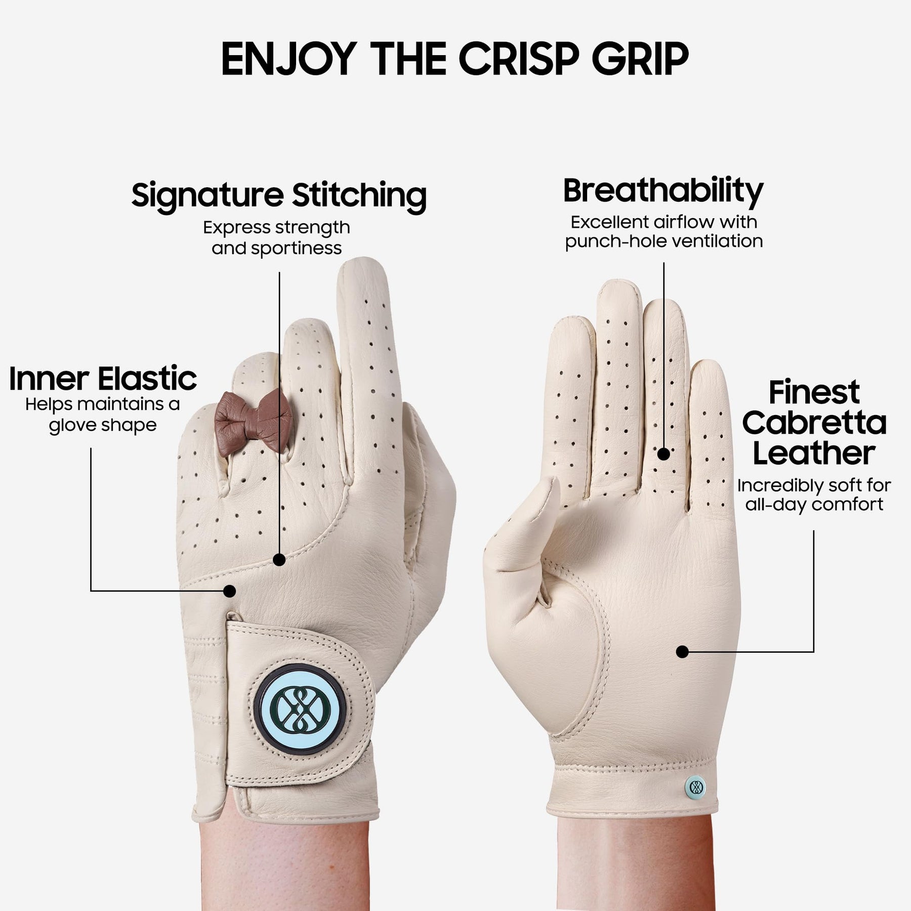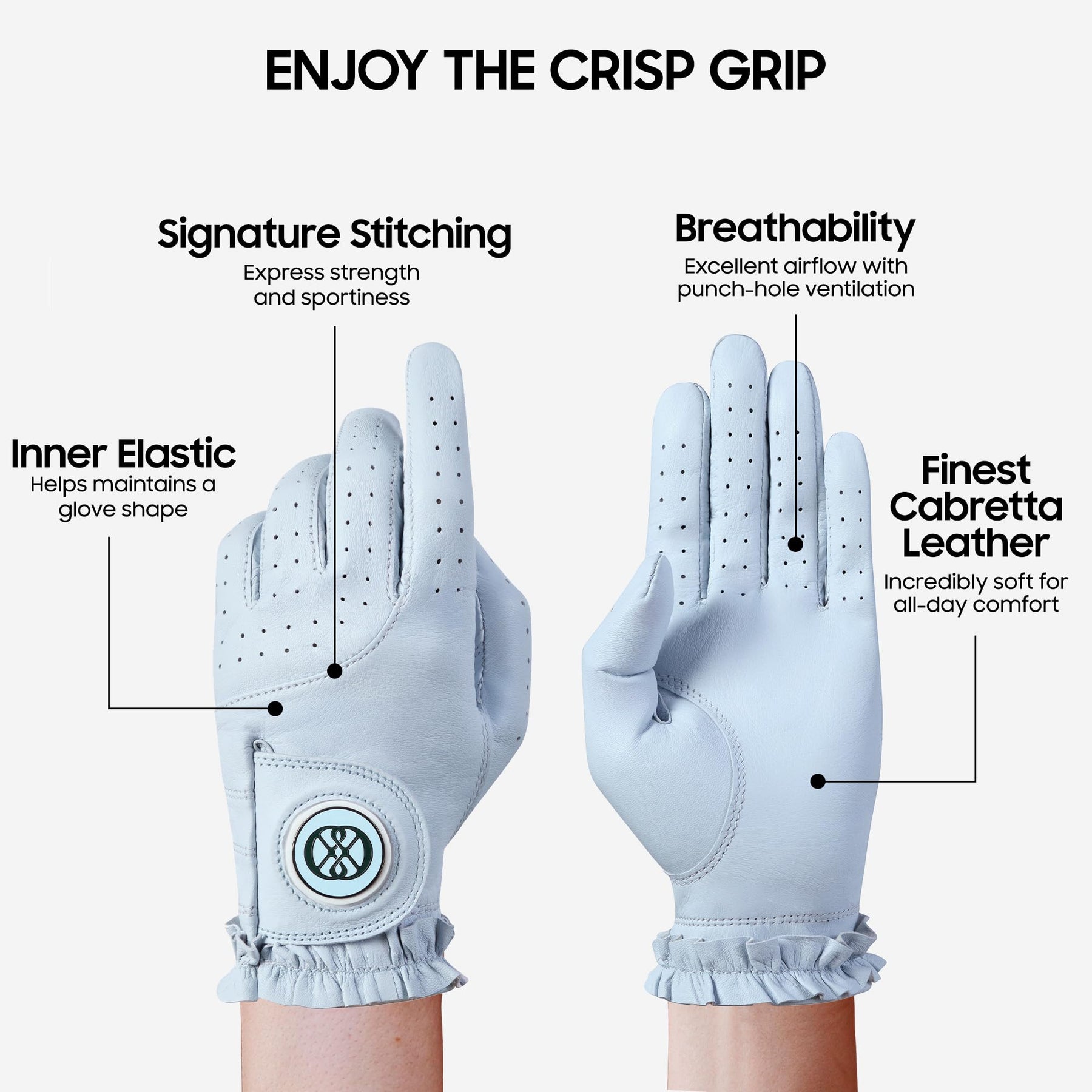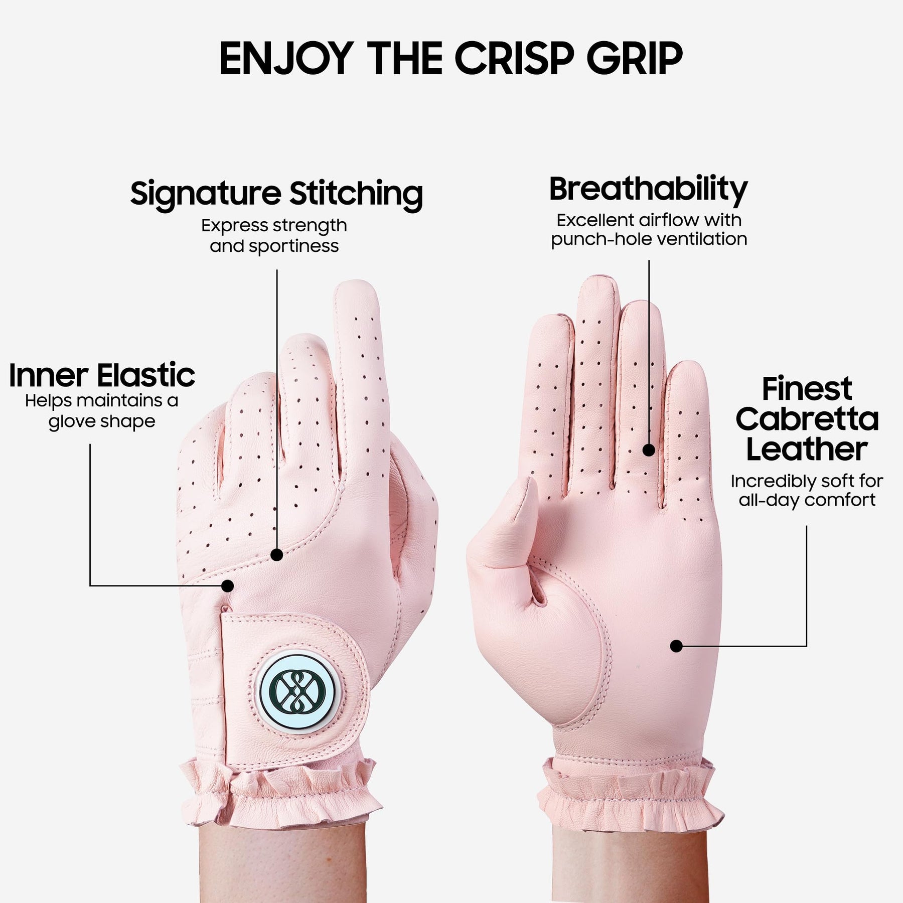 CLAPLEY Womenโ€™s Golf Glove โ€“ Premium Cabretta Leather with Magnetic Ball Marker, Breathable Design, Good Elasticity, Precious Gift for Golfers, Super Soft Feel, Left and Right Hand, Secure Fit