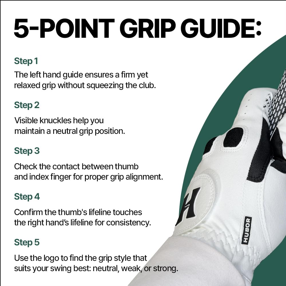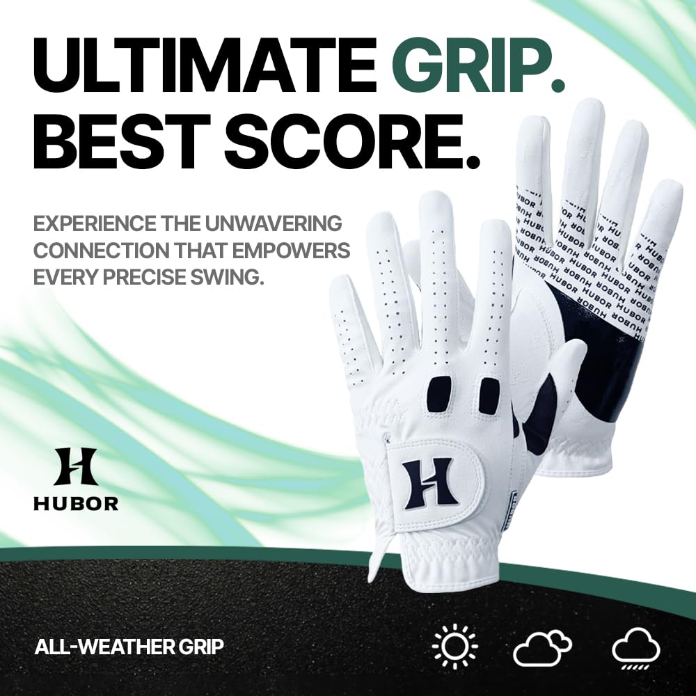 HUBOR Golf Glove Grip 2 – Men’s/Women’s All‑Weather Leatherette & Mesh Golf Glove