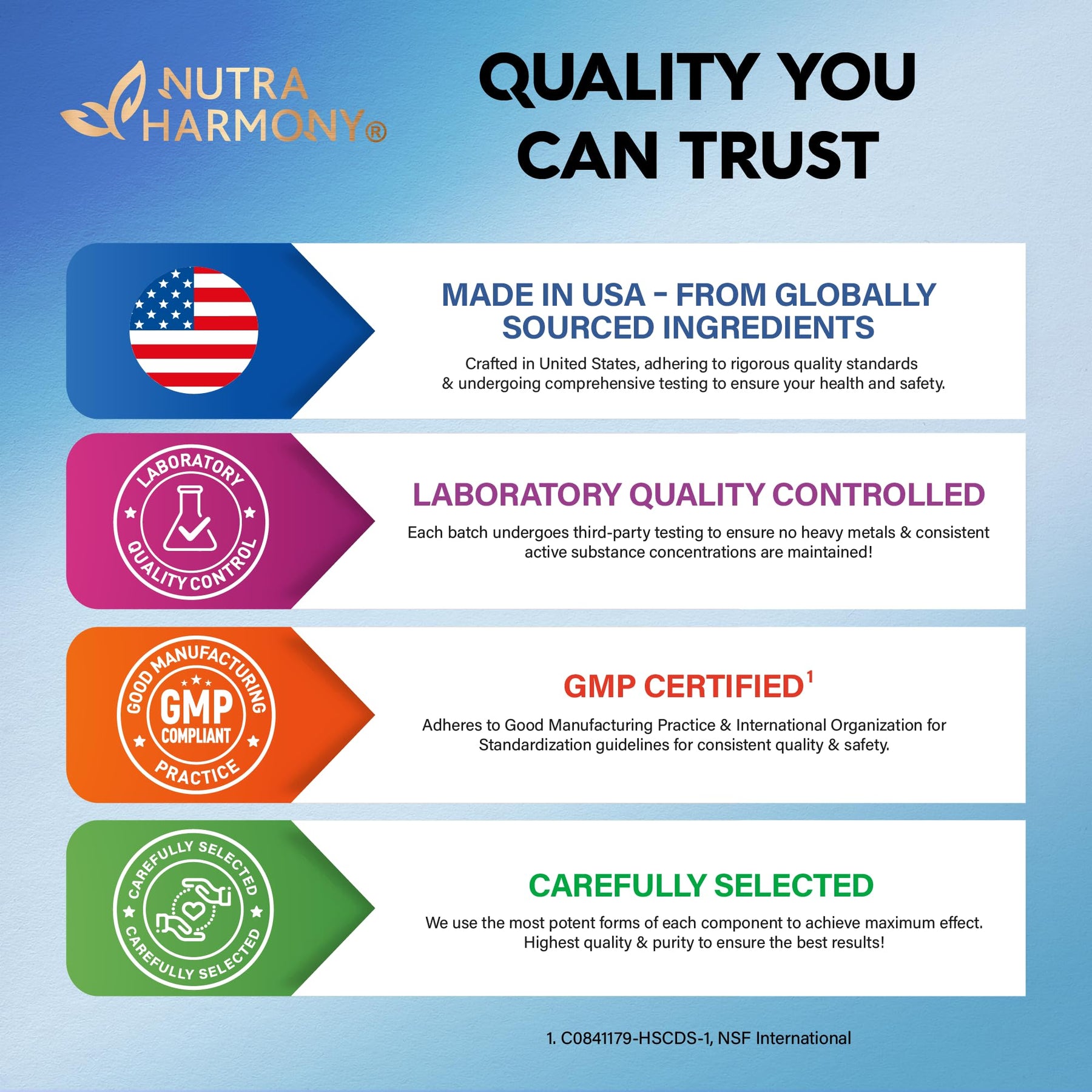 • Trustworthy Service — We are committed to providing exceptional customer service and transparency with NUTRAHARMONY’s carefully selected joint support supplements! With Glucosamine Chondroitin, you can trust that you're receiving a premium-quality supplement backed by scientific research and dedicated customer support!