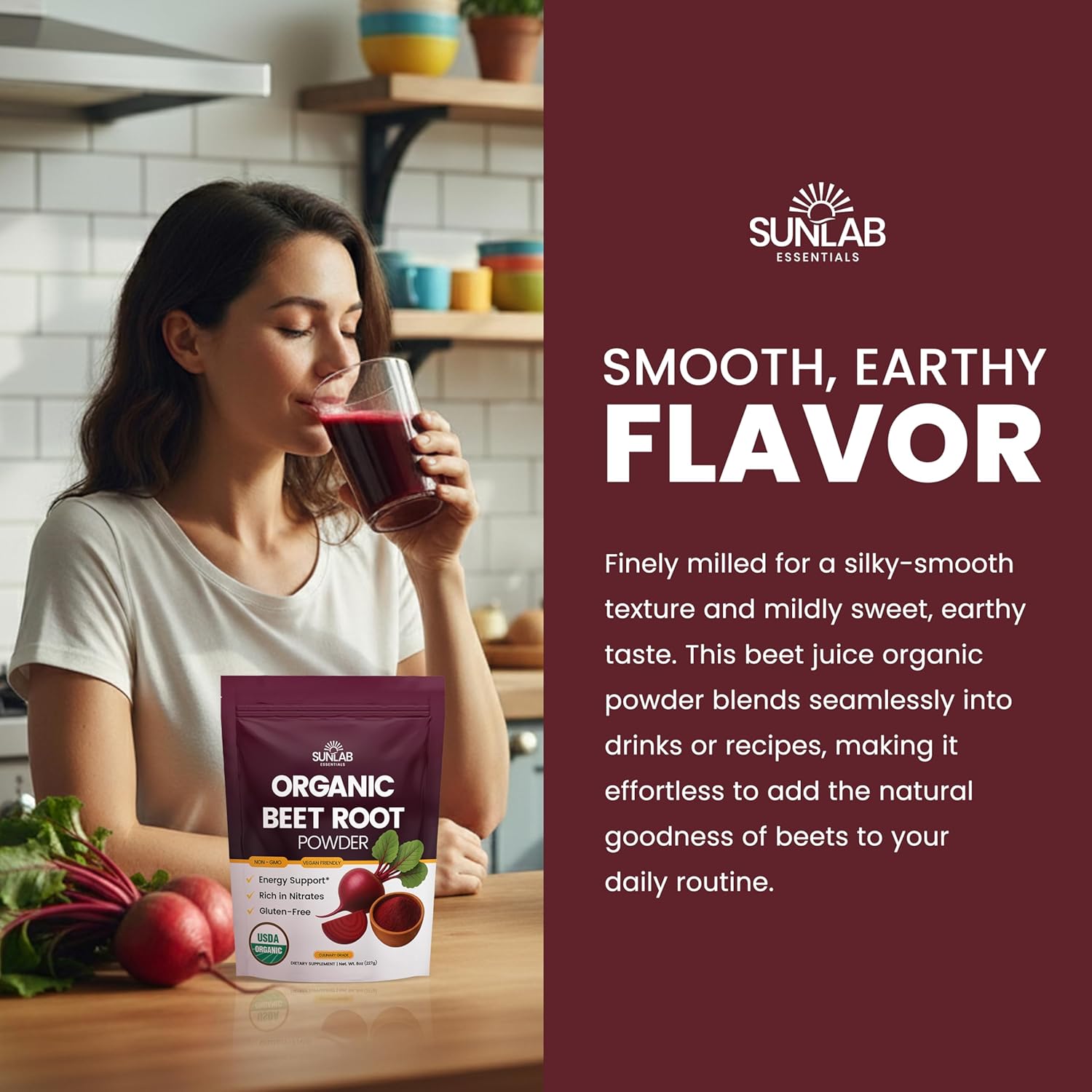 • SMOOTH, EARTHY FLAVOR – Finely milled for a silky texture and a mildly sweet, earthy taste. This beet juice organic powder blends seamlessly into drinks and recipes, making it easy to add the natural goodness of beets to your daily routine.