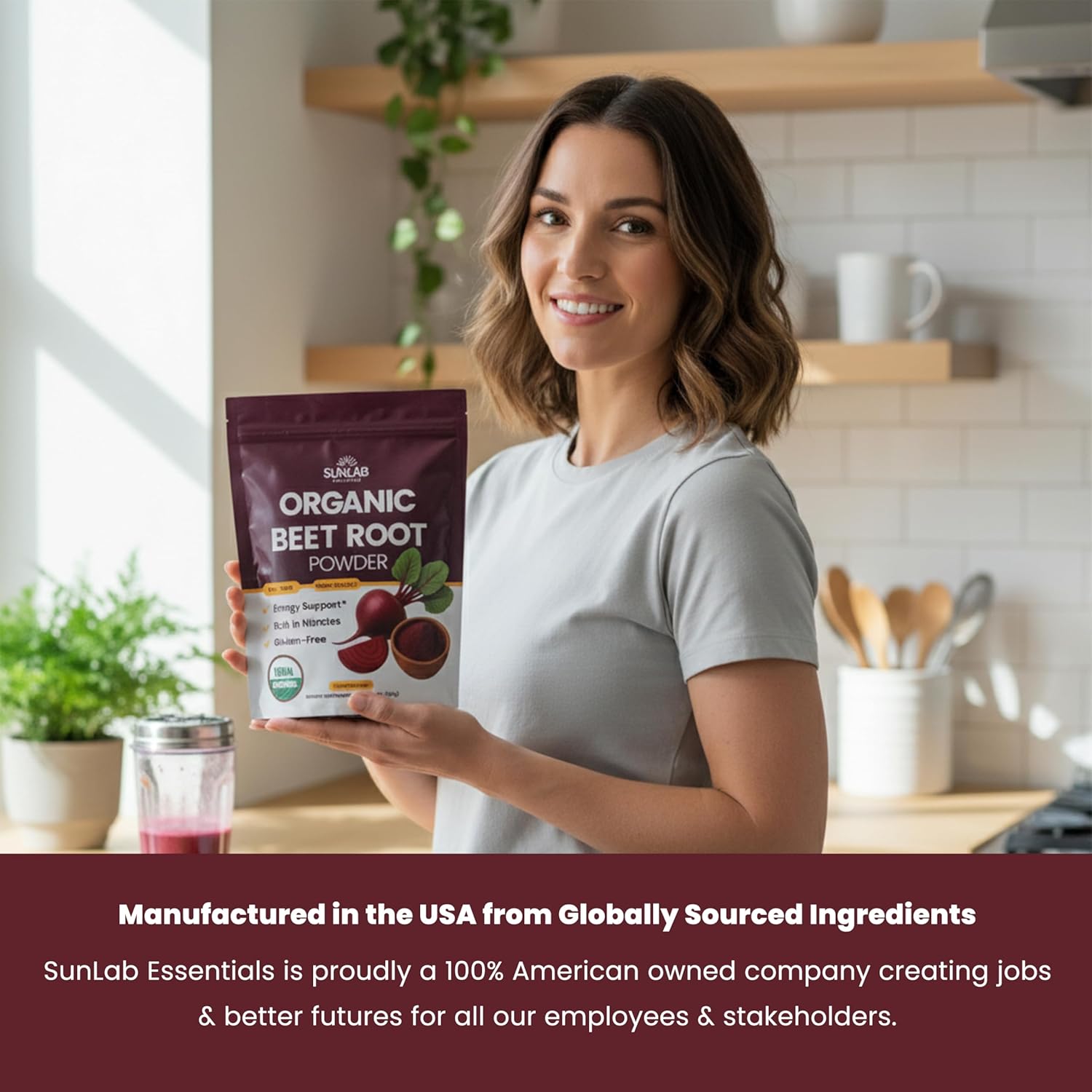 • Manufactured in the USA from Globally Sourced Ingredients - SunLab Essentials is proudly a 100% American owned company creating jobs & better futures for all our employees & stakeholders. All of our supplements are manufactured in the USA!