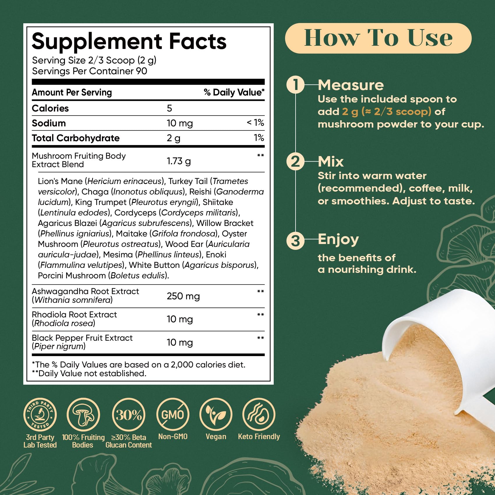 EASY TO USE: Add 2 g (about 2/3 scoop) to your smoothie, coffee, matcha, or recipes. For new users, we recommend starting with a smaller dose, such as half a scoop, to assess your personal response before gradually increasing to your preferred serving. If you have allergies, sensitivities, or a medical condition, please consult a healthcare professional before use