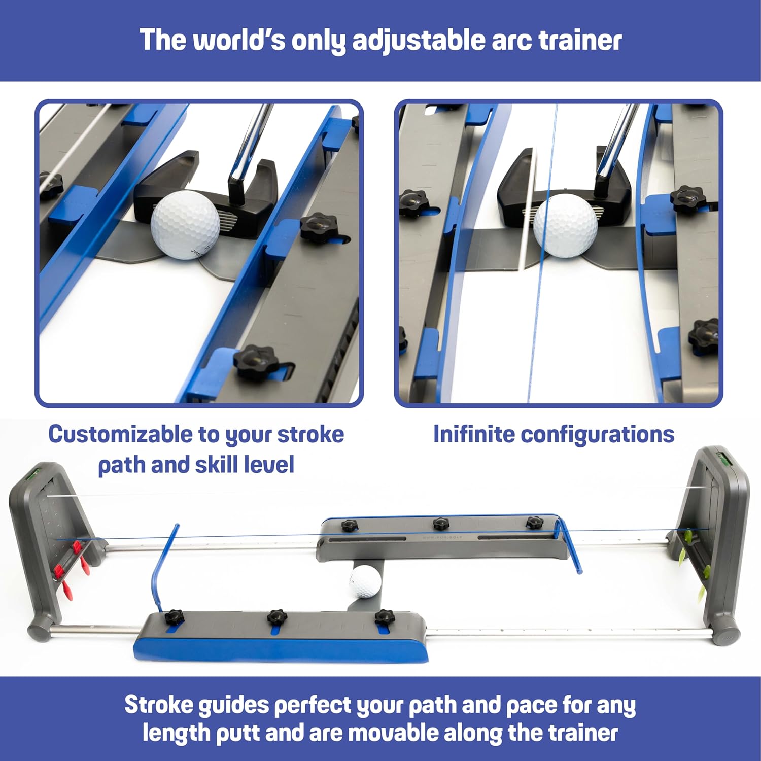 • ADJUSTABLE ARC TRAINER TOOL - Customizable path trainers fit every putting style or orientation. This putting aid helps you dial in arc, path, start line, and pace—great for indoor golf practice or tournament golf. Golf is all about playing your game, so we made this aid adjustable to anyones golf putting stroke.