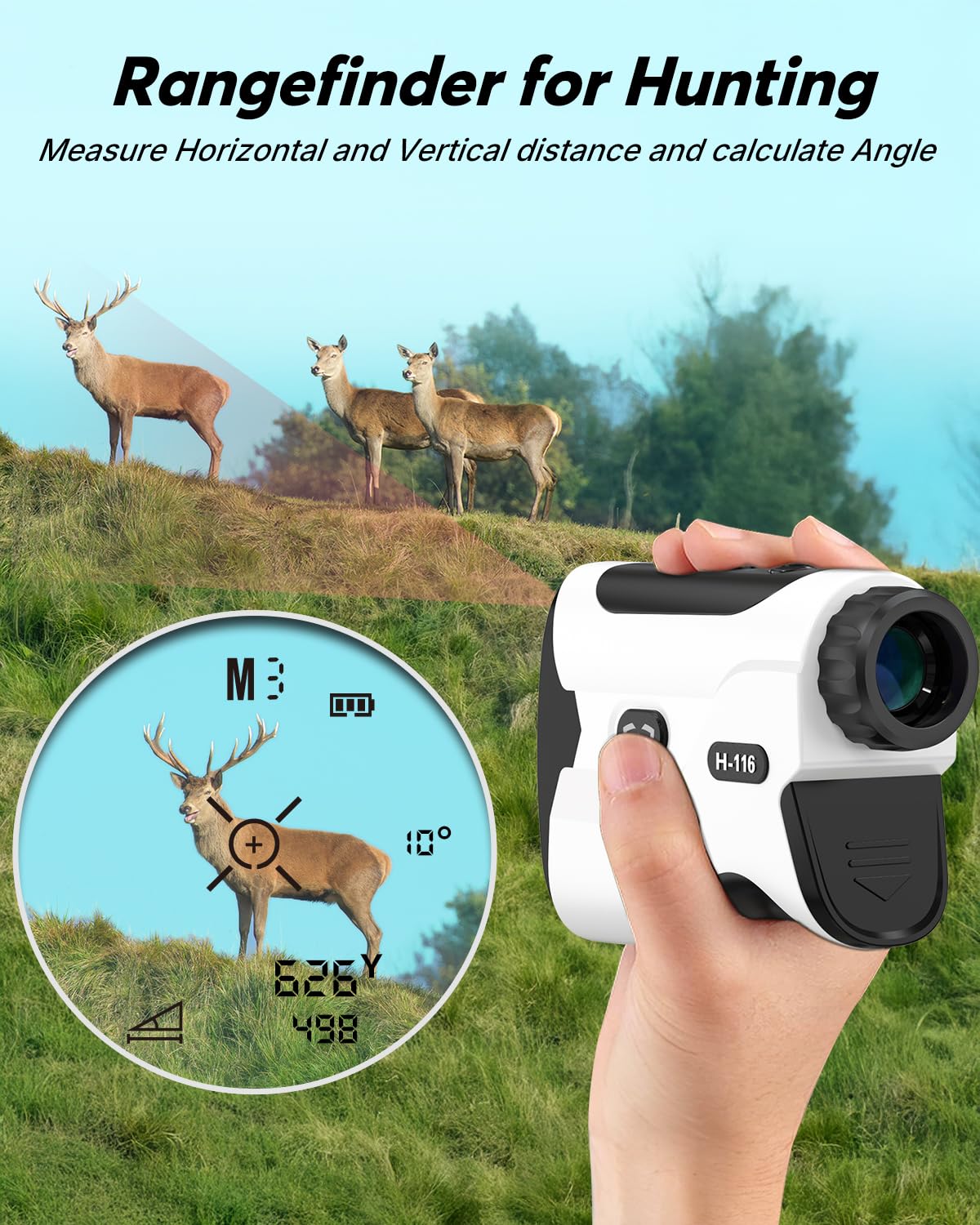• High-precision Measurement: This golf range finder has a measuring range of 5-1200 yards with an accuracy of 0.5 yards (yard/meter). Rotate the eyepiece to focus on the object and take a quick reading