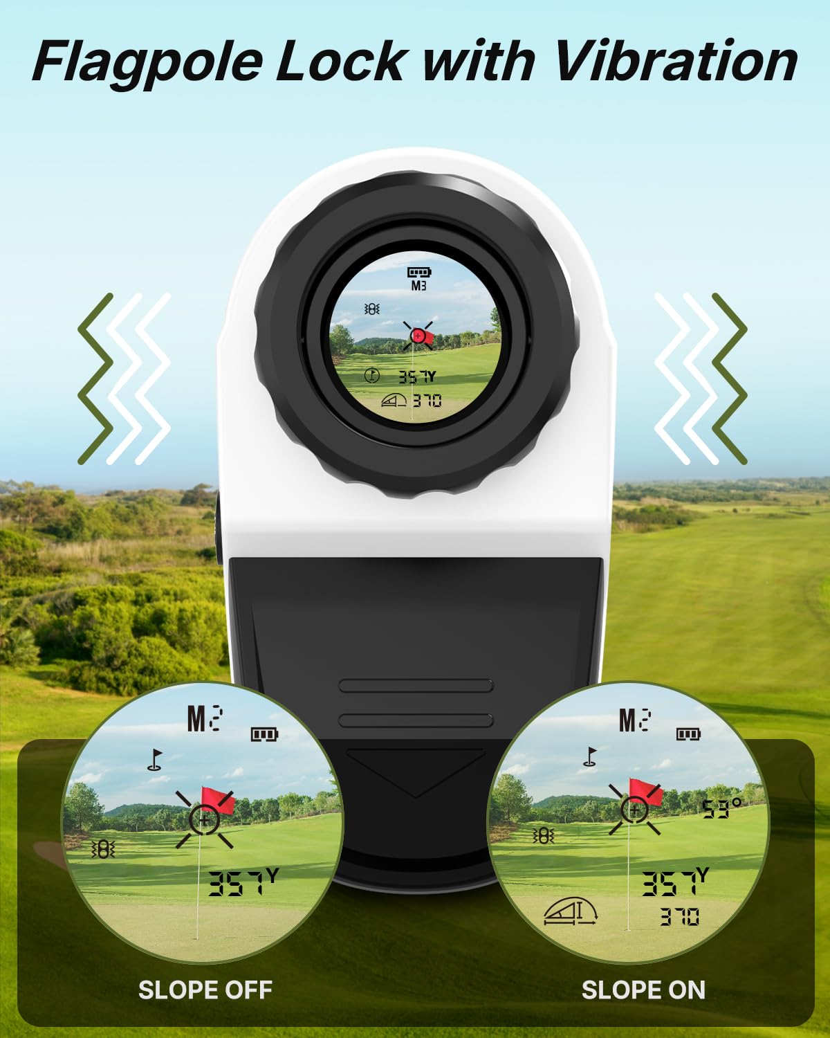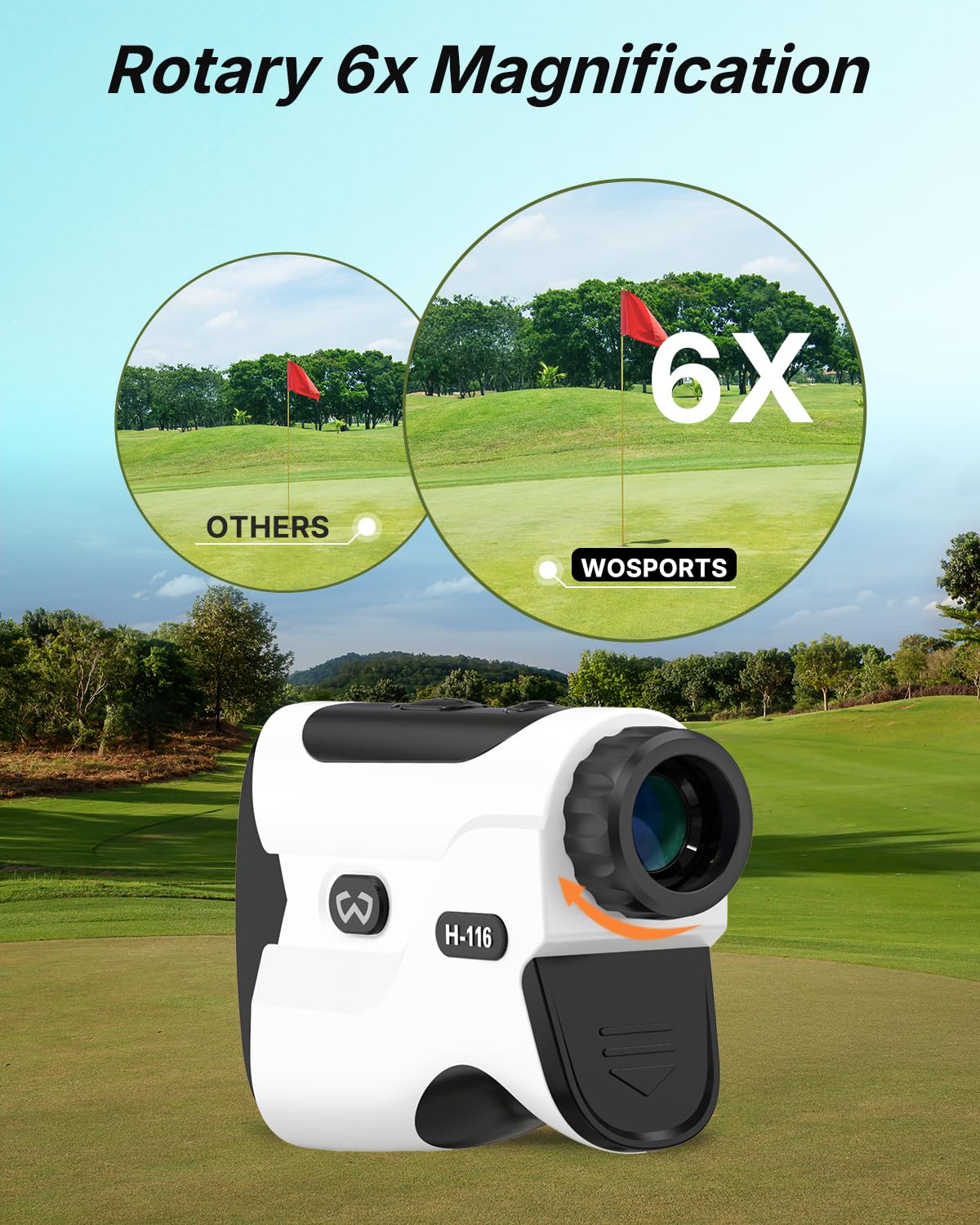 • Intelligent Flagpole Locking: WOSPORTS rangefinder delivers a short vibration to confirm that you're ranging the flag and not a tree or other items in the background
