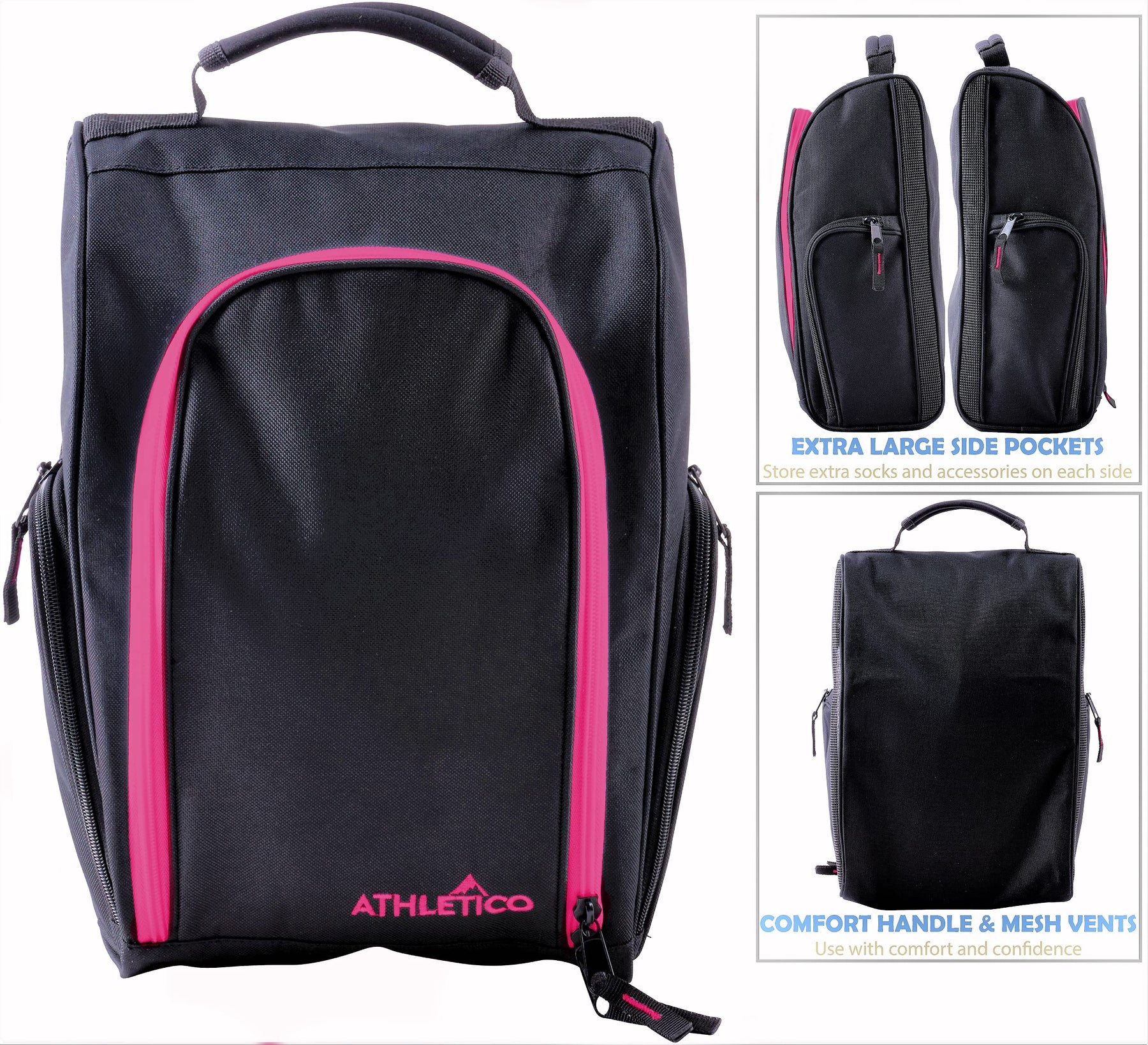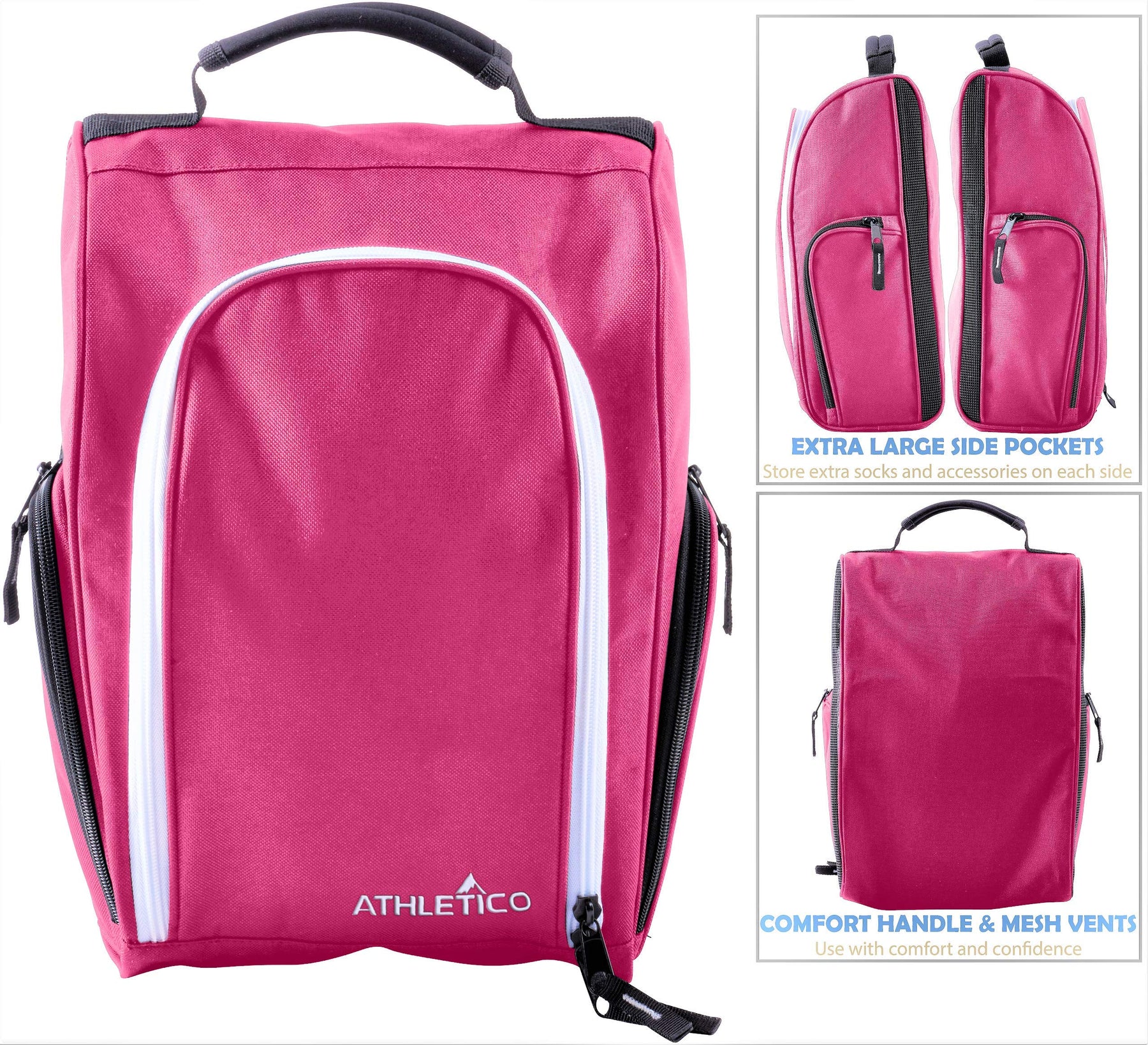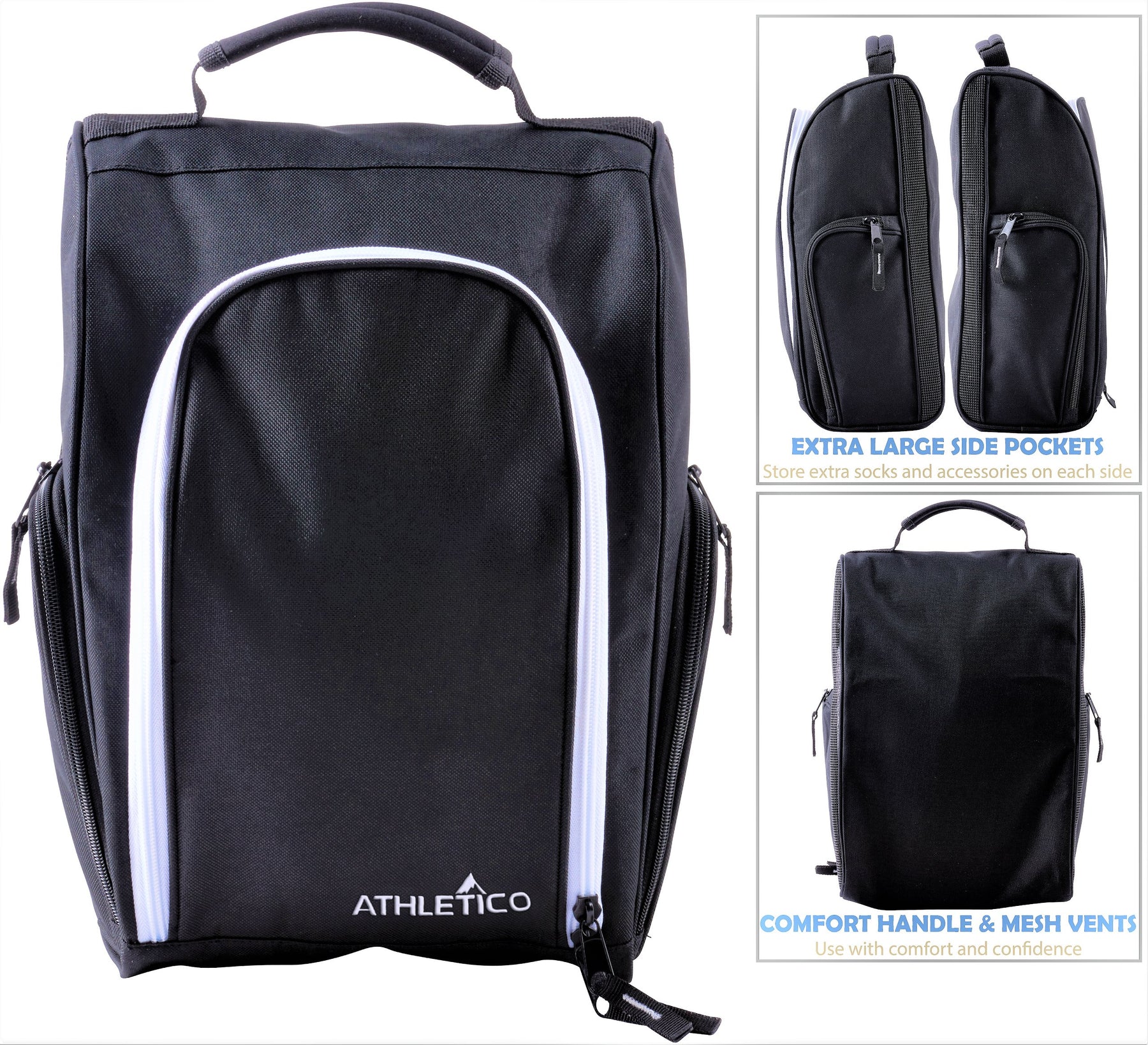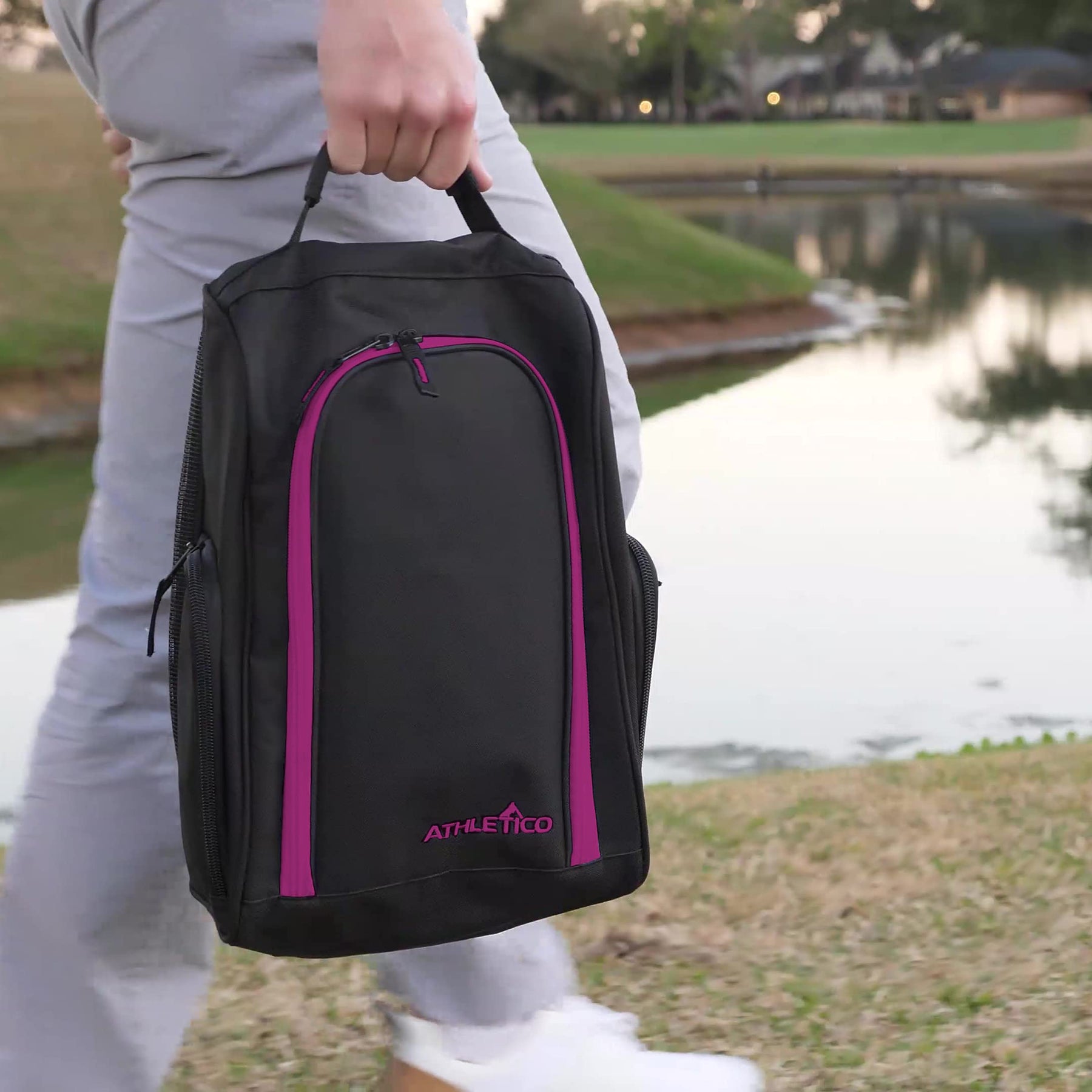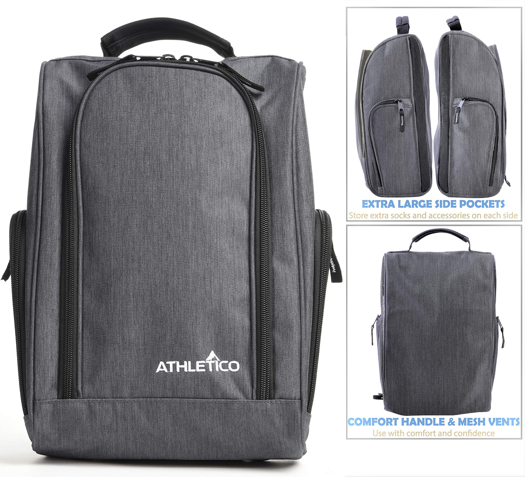 Athletico Golf Shoe Bag - Zippered Shoe Carrier Bags With Ventilation & Outside Pocket for Socks, Tees, etc. (Gray)