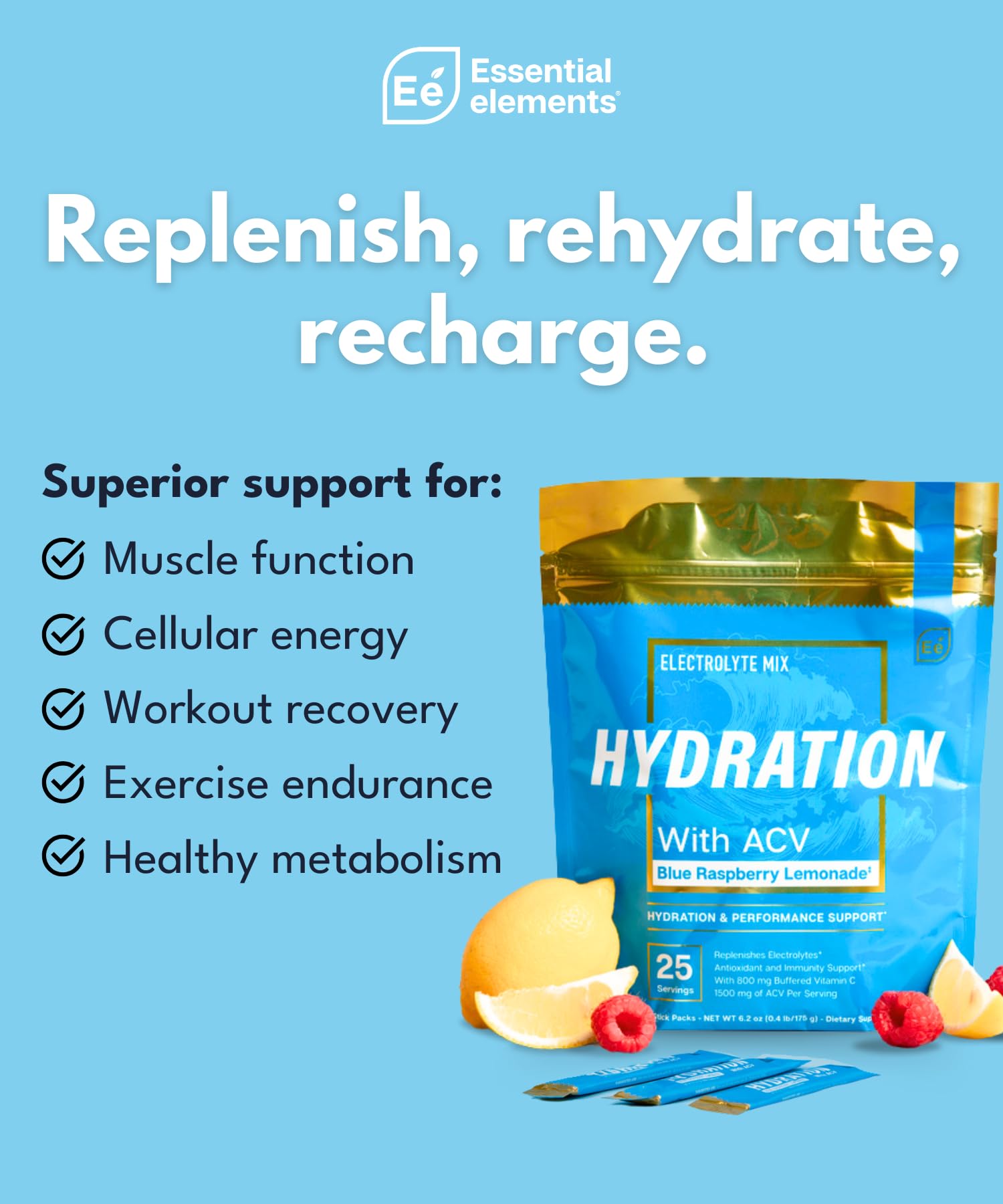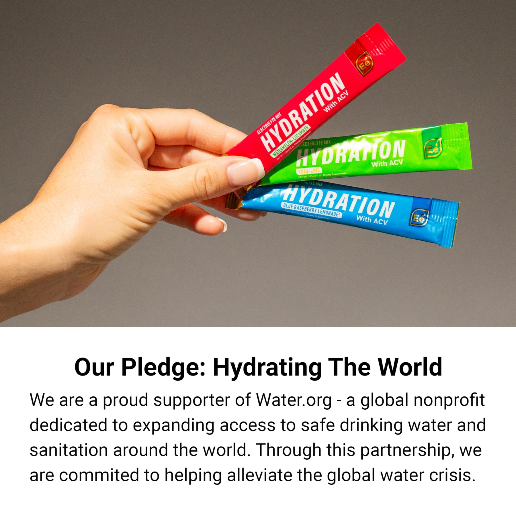 Hydration Beyond a Glass of Water: Whether you’re traveling, exercising, or trying to beat the heat, our Hydration Drink is designed to help you recharge and rehydrate.* In order for your body to absorb water, it requires electrolytes, which is why drinking both together helps you hydrate faster and more efficiently.* Our electrolyte packets use sodium, chloride & potassium to deliver comprehensive hydration support.*