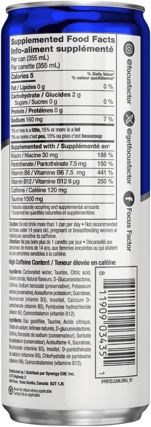 Focus Factor Energy Drink - 12 x 355ml Cans (Orange Flavour) - with Focus + Energy - Lightly Carbonated, Sugar Free, Low Calorie with Vitamin B6 & Vitamin B12